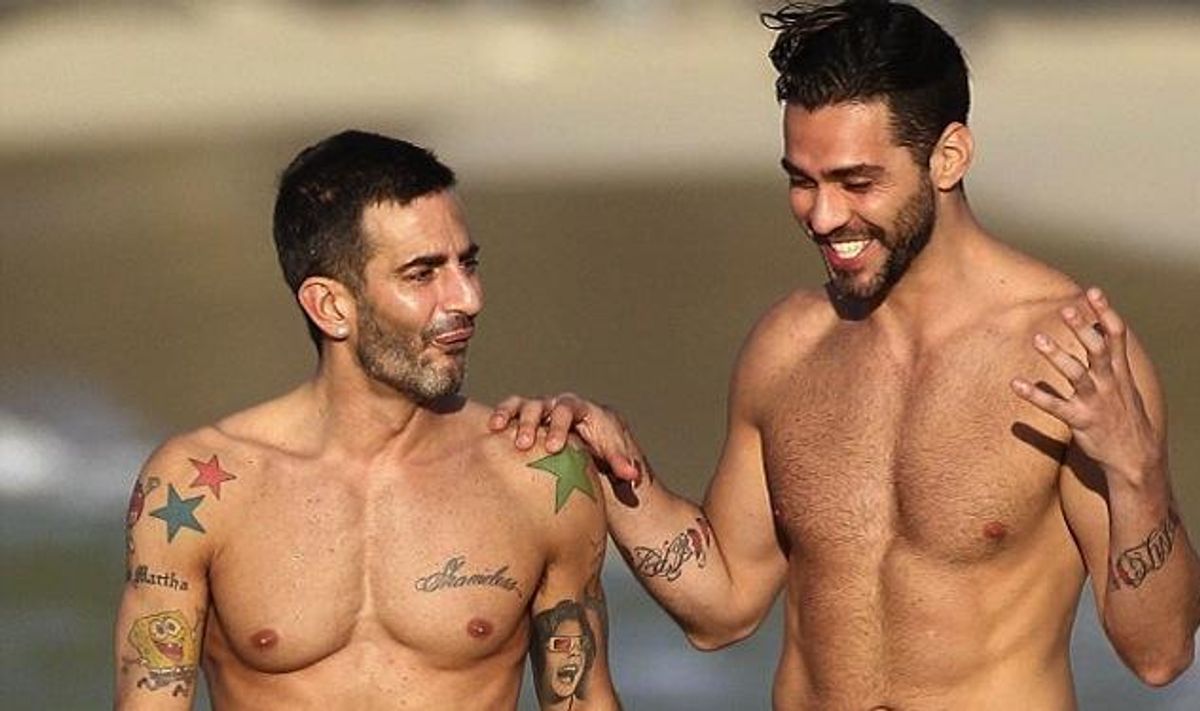 Now, on first glance, this isn't so interesting (other than the fact that Jacobs and Martone are rocking hot bods), but it brings up an interesting question: Where in the world is Harry Louis? Remember, Harry Louis is the porn star that was rumored to be dating Jacobs only a few weeks ago. If the two were, in fact, courting one another, it seems strange that Jacobs would be hanging out with his former lover, no? Jacobs is very vocal about the fact that he's still close friends with Martone (he told Vogue this month: "Yeah, we are best friends. We speak to each other, I don't know, six times a day.") so the two of them bonding isn't so odd...but it certainly puts a major wrench in any speculation that Marc is seeing Harry Louis.