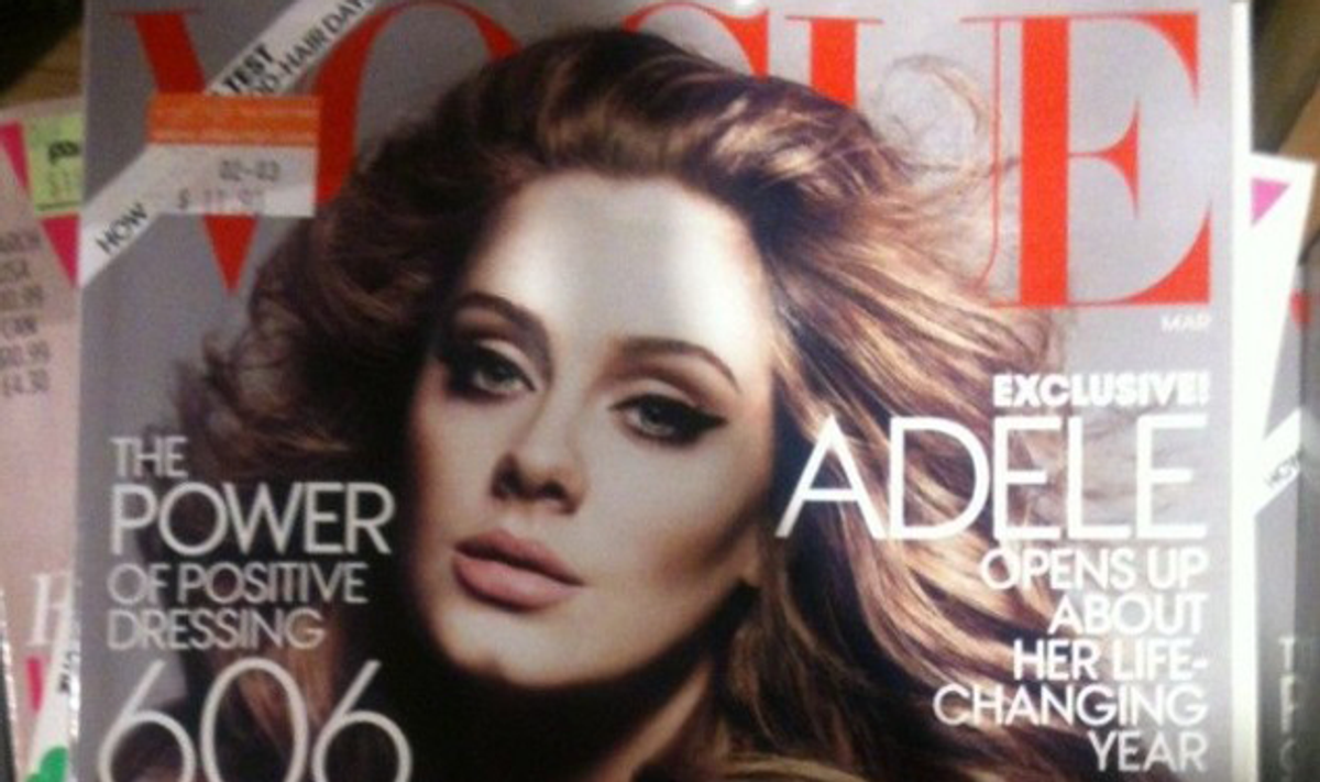 Last year, we slapped the smokey-voiced songstress Adele on the cover of our June/July "Hot List" issue, proclaiming it "the summer of Adele". Looks like it's not just summer that Adele reigns over, as her popularity has only since grown, regardless of season. Now, the singer has landed the covetable position of Vogue cover girl for their March issue. There were rumors a while back that the women's glossy had tapped Adele, but this picture from Fashin seems to confirm it. She looks beautiful as always, but we're especially liking the va-va-voom factor provided courtesy of her ample cleavage. Work it out, girl. With the combination of a face, voice and body like that, it's hard to believe that you were ever a "boozy shut in".