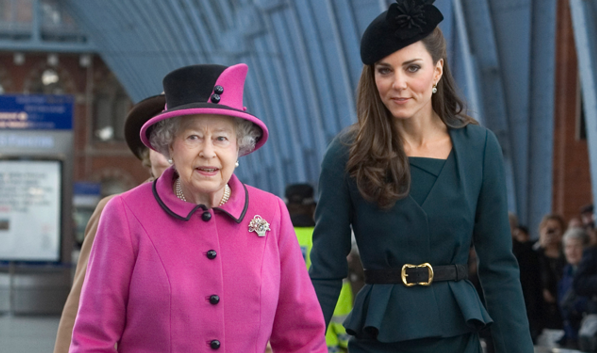 Hey, so it's a bit of a slow news day today--eh, it happens right? Everyone must be in a post-Fashion Week daze, which makes sense. Yet one thing we came across that was kinda interesting is this picture of Princess Kate Middleton and Queen Elizabeth II. It got us to thinking....if this were a fashion duel of royal proportions, who would win? Yes, Kate--with her fair skin, dark hair and stick-thin frame--looks great in her peplumed jacket and above-the-knee skirt (appropriate but flirty!), and for that we give her major props. But the Queen, who is 85, mind you, is not about to let this newcomer upstage her. Oh no. She decided on a sensible neon pink coat with matching hat. Then she slaps a fab brooch on it, slips on some sensible black gloves, pearls, and buckled flats (similar to the ones Marc Jacobs showed for fall 2012....kinda) before grabbing her simple-chic bag and off she goes. So yes, while both these gals are looking foxy, we're gonna give the point to the reigning monarch.