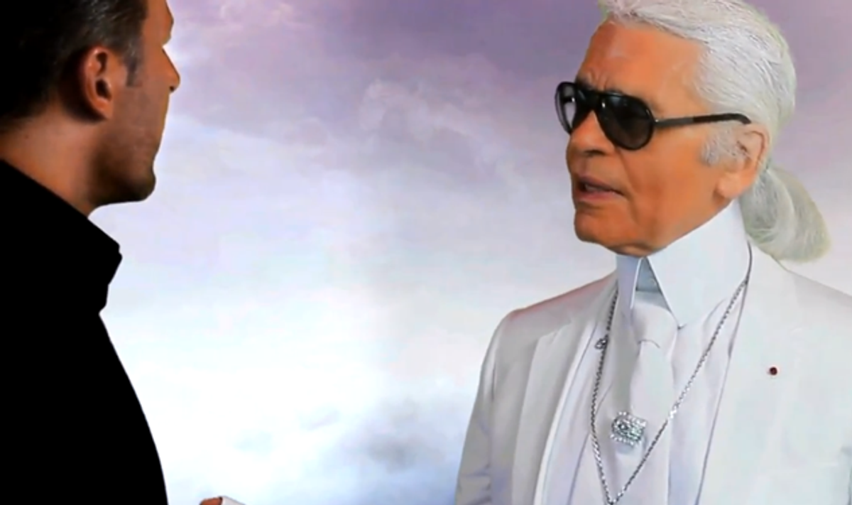 In the same way that Chanel has become shorthand for luxury and opulence, the very public man behind the brand, Karl Lagerfeld, too, has become more than just a mere dressmaker toiling away with yards of lace. Lagerfeld--and his seemingly endless list of outside artistic pursuits--has become an emblem for civility and class. So, for a musician, what could serve as a better symbol of aspiration than a cameo by The Kaiser? That seems to be thinking behind hip-hop artist Jean Roch's video, which opens with a heavenly vision of Karl, with dark sunglasses and snowy white ponytail in tow. He visits Roch like an apparition of all things beautiful and welcomes him to Saint Tropez, which, incidentally, is the name of the song. Fancy that. Check out the entire video below, which also features Snoop Dogg. Sadly the two don't interact during the proceedings, and there's no evidence that they even came in contact with one another. Sad.