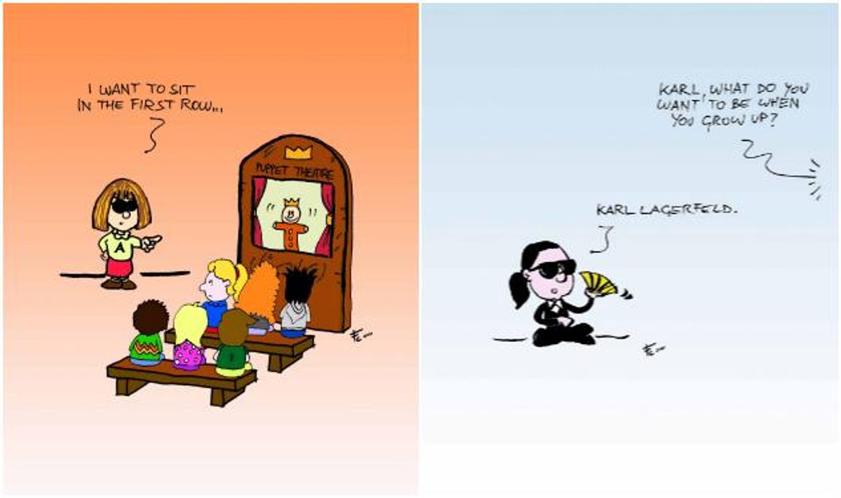 Was 6-year-old Anna as much of a diva as she is today? Yes, according to The Fashion Cartoonist, an anonymous artist who likes to imagine the editor of American Vogue and her fashion peers in their early years on his (or her) blog When They Were Kids...