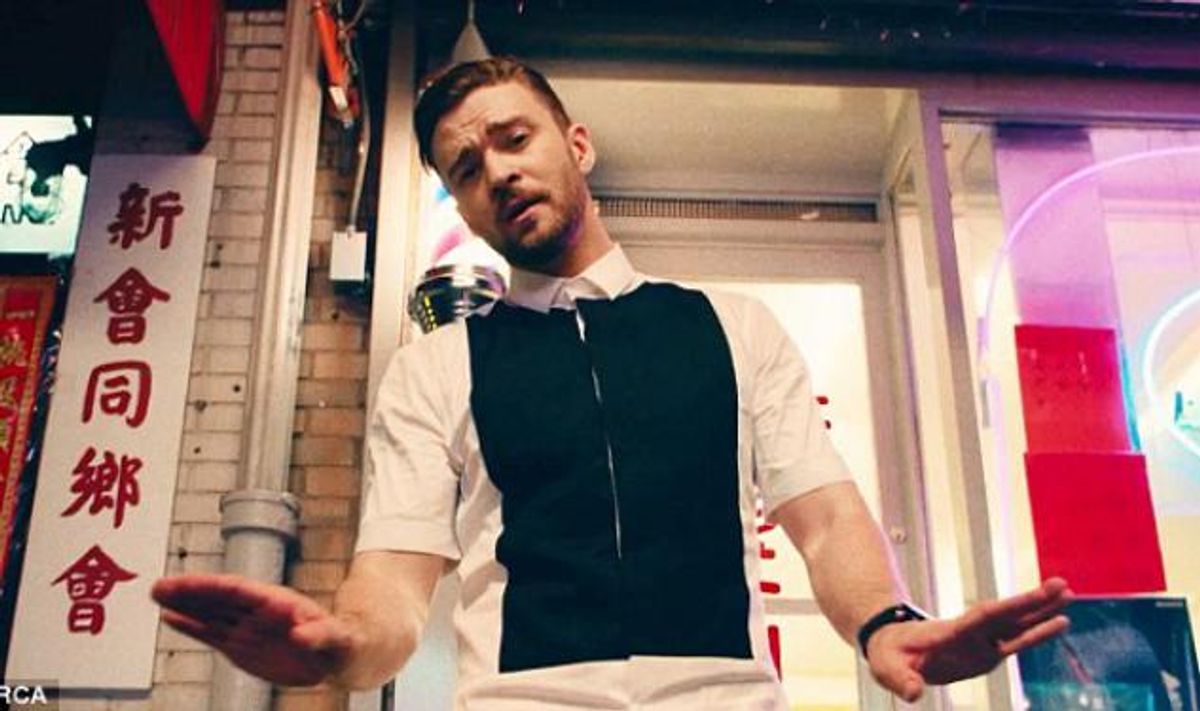 For most of the video, the singer is seen wearing a Neil Barrett tuxedo shirt with a large black panel, which doesn't seem to please everybody. Some fans have called the shirt "ridiculous", while other commentators praised it as the "coolest shirt ever". In another segment shot at a live performance with rapper Jay Z (sans hyphen now, please), Timberlake wears a white T-shirt with black triangular panels on the side, also from the new Neil Barrett Autumn/Winter collection.