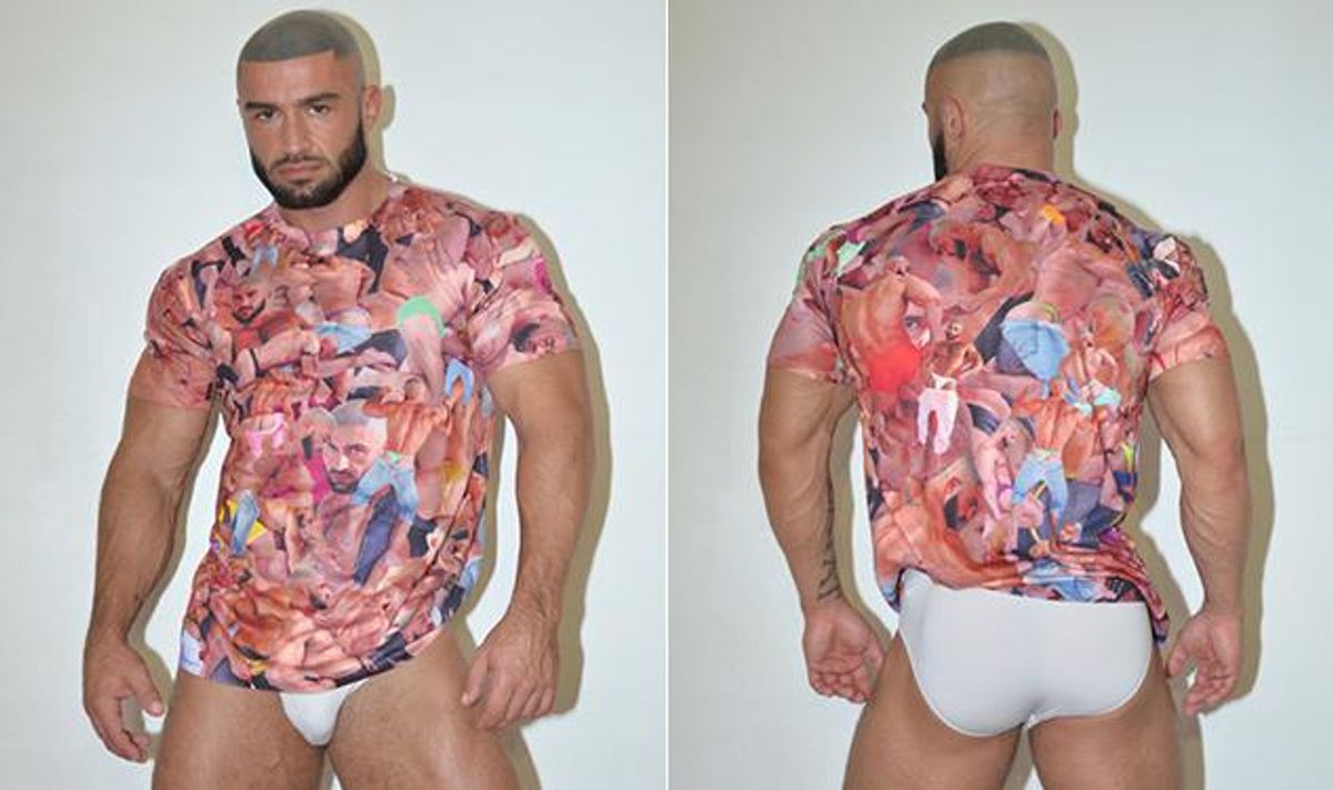 Retired adult film star, Francois Sagat, is still finding a way to titillate fans. Earlier this year he collaborated with Parisian designer Pierre-Henri to create a budding fashion line, Kirk Sagat, which included a line of tees covered with Sagat's bare chest. The two designers have taken the concept further with a new shirt that gives fans all the Sagats they can handle.