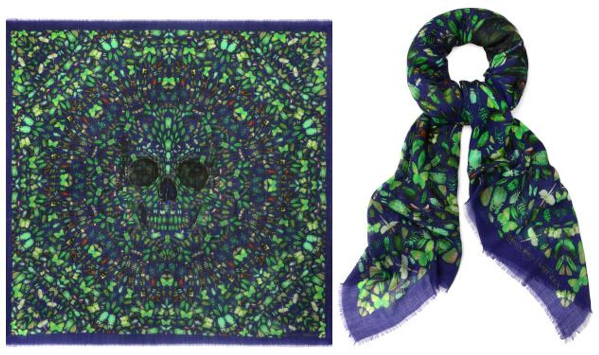 It's already been 10 years since Alexander McQueen debuted his iconic skull scarf with the Irere collection, for Spring/Summer 2003. To mark the 10th anniversary of this brand staple, artist Damien Hirst was asked to designed 30 one-off patterns for a new scarf collection. Each design is adapted from Hirst's Entomology series -- butterflies, spiders and other bugs have been worked to form kaleidoscopic shapes, laid out to create the signature McQueen skull motif. The scarves are available in chiffon, ponge, twill, and cashmere, with prices ranging from $515 to $1175.