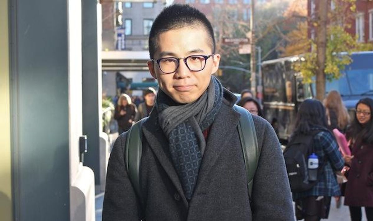 Sichao on the NYU campus. Dressed in luxury garbs, Sichao pulls off a Jil Sander overcoat with Church's lace-ups, and a WANT Les Essentiels de la Vie tweed backpack we're dying to get our hands on.