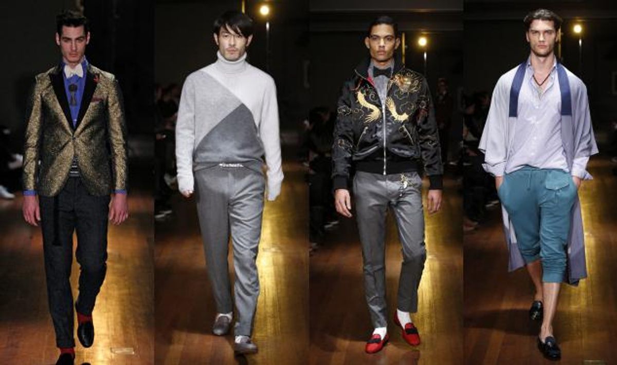 Opening the show, we also noticed model Henrik Fallenius (pictured above, right): You might recognize him from Out's latest February issue, in which three-piece suits were completely optional.
