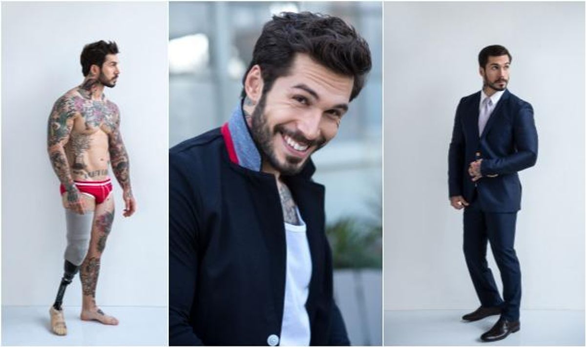 "We pulled a suit from Zara. Alex is a muscular guy, so we did have some issues with the fit. But he loved it," Terrell explains. "The shoe we pulled wouldn't fit on the prosthetic foot, so we had to Photoshop it in later. But it's Alex's smile, his energy that translates more than anything."