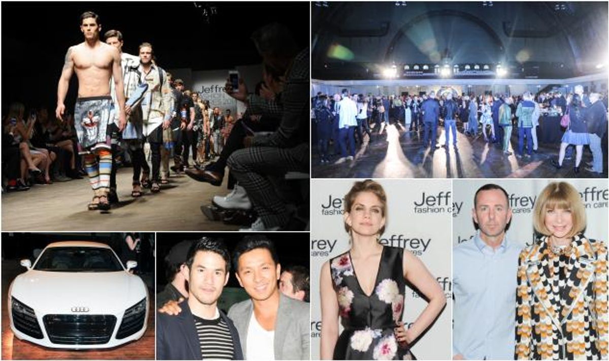 Pictured, clockwise from top left: Jeffrey Fashion Cares runway show; the 69th Regiment Armory; Jeffrey Kalinsky and Anna Wintour; Anna Chlumsky; Joseph Altuzarra and Prabal Gurung; Audi car.