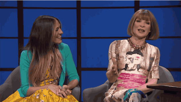 When it comes to shade, any drag queen can take a lesson from the Queen of throwing it, Vogue's editrix-in-chic, Anna Wintour. With gal pal Sarah Jessica Parker in tow, the Lady Wintour paid a visit to Late Night with Seth Meyers where she opened up the library and began to read the men who had come up short at Monday's Met Gala. The men were tasked with a white tie dress code and apparently only Benedict Cumberbatch was up to it.