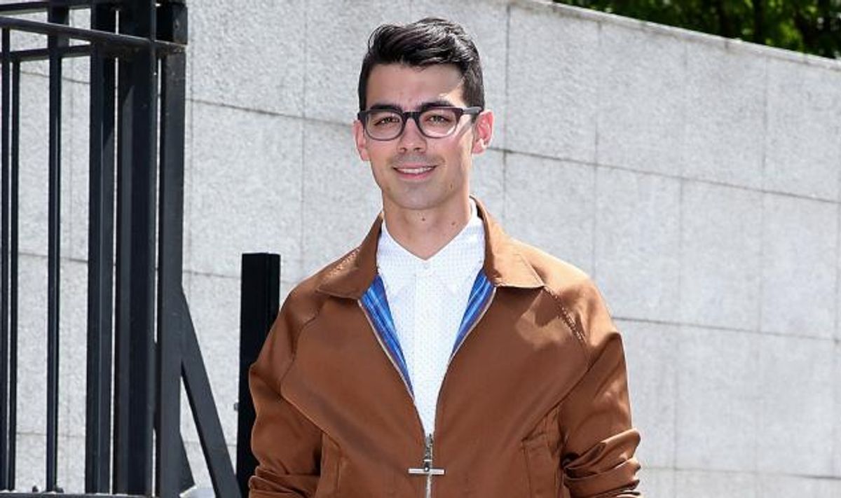 Brother Joe Jonas has become quite the regular at Fashion Week. Last season, we spotted him on the front row of every noteworthy menswear designer. This Spring, Joe is back in great form. Spotted after the Louis Vuitton runway show at Paris Fashion Week, he looked effortlessly chic in a lovely caramel brown utility jacket (signed Louis Vuitton, natch), which he paired with a crisp white shirt, and demure school boy pants with an ideal fit -- not too tight, not too loose. We love the retro specs as well, with a black frame that echoes the polished lace-ups. Joe, you get a gold star!