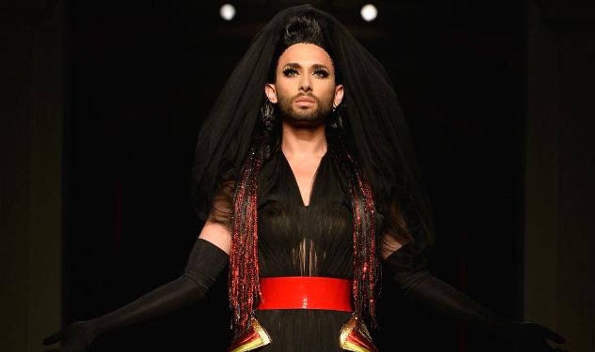 The singer, who won this year's Eurovision contest with "Rise Like a Phoenix," has become a prominent figure in the European LGBT community, will open for Lady Gaga at her "ARTRAVE" tour on select dates. And, naturally, she looked stunning in Gaultier's haute couture.