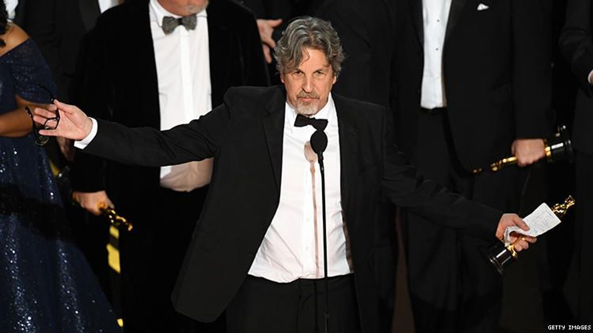 Director Peter Farrelly; producers Jim Burke, Charles B. Wessler, and Brian Hayes Currie; and Nick Vallelonga -- the IRL son of Tony Vallelonga, played by Viggo Mortensen in the film -- accepted the award at 2019 Oscars held at the Dolby Theatre in Hollywood Sunday night.