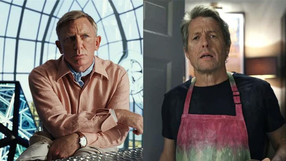 There are actually two Hugh Grant moments in the movie. The first is at the beginning of the film when Blanc is in the bathtub playing Among Us with Angela Lansbury, Natasha Lyonne, Kareem Abdul Jabbar, and the late Stephen Sondheim. It is Grant's voice that summons Blanc out of the bathroom. He's clearly seen later in the film answering the door of their shared home with a jar of sourdough starter.