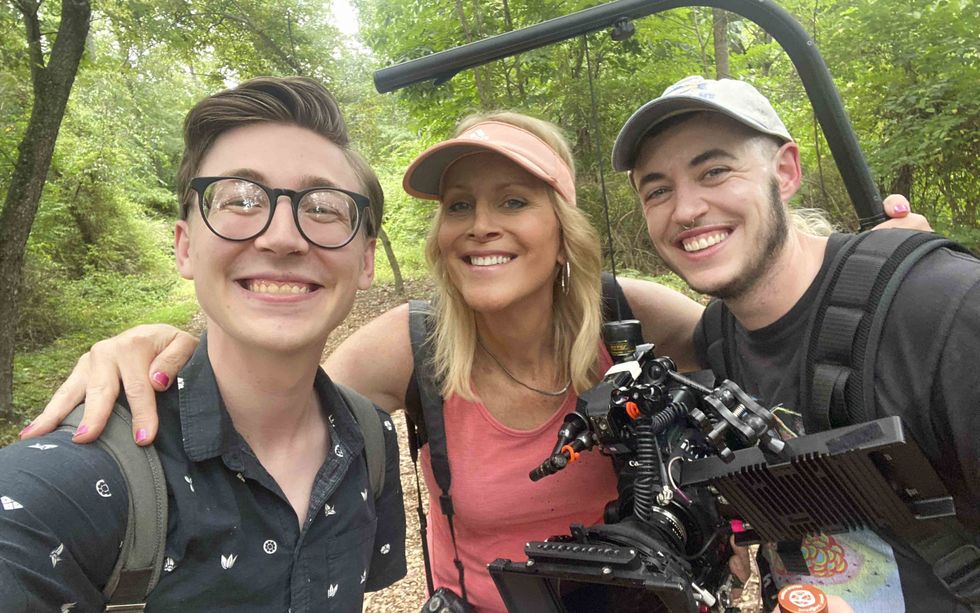 Director Hansen Bursic and Director of Photography Mad Bishop stand to the left and right of Jennifer Lydon.