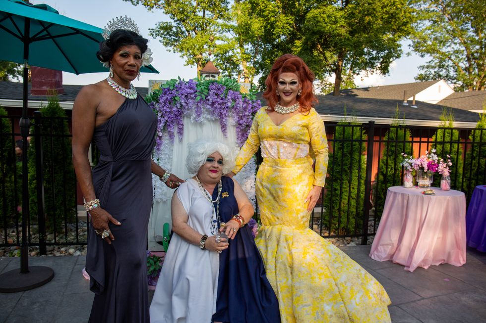 Phoebe Manntrappe (aka Kevin Gilmore), Miss Pumpkin (aka Michael Gardener), and Miss Redd (aka Rusty Miller) pose at community event honoring Mother Cavallucci. (Photo by Ireashia M. Bennett)