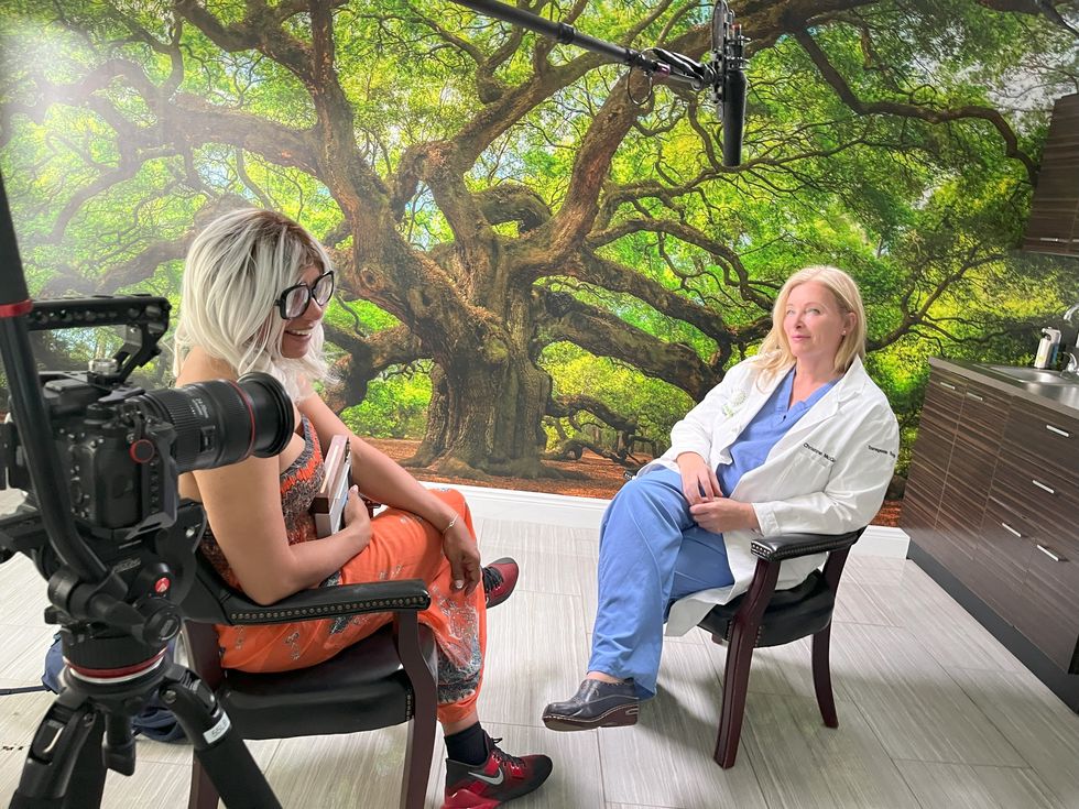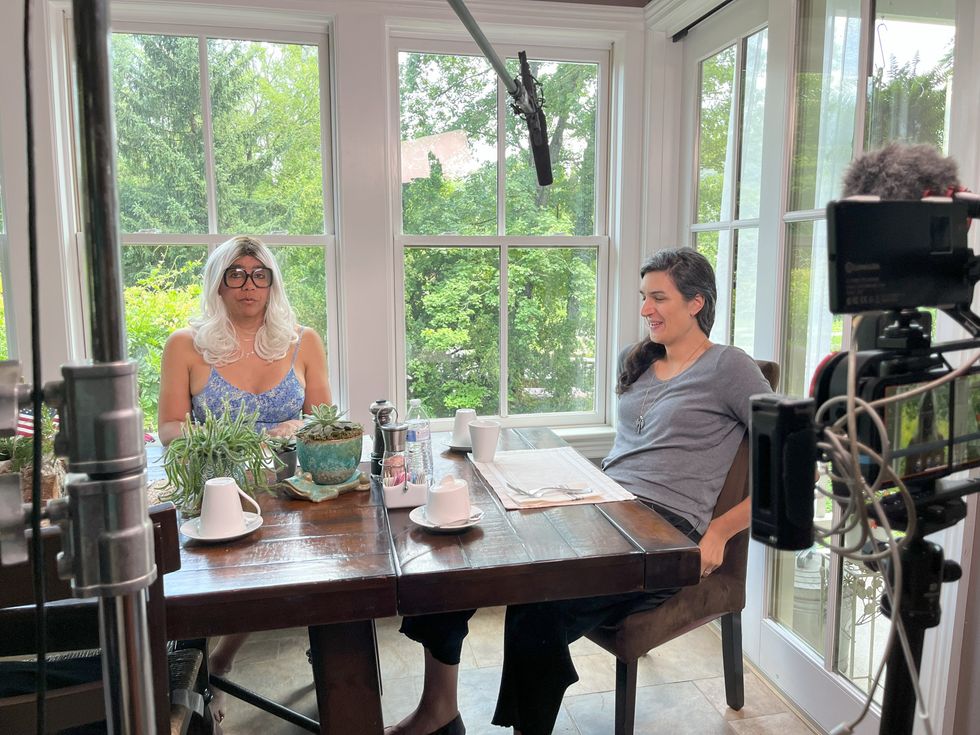 Director Kase Peña (left) interviewing Dr. Christine McGinn (right).