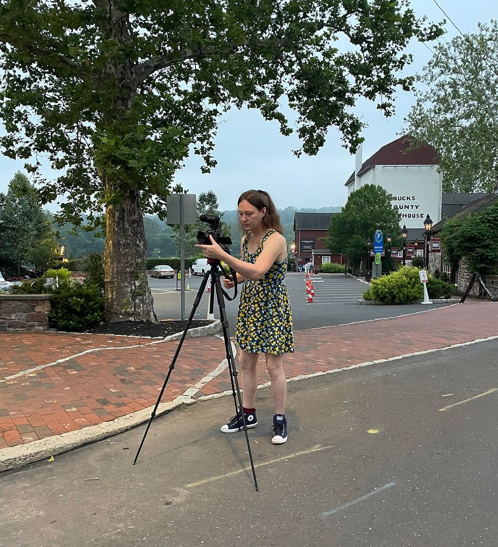 Director Joy Davenport captures early morning B-roll in downtown New Hope. (Photo by Mad Bishop)