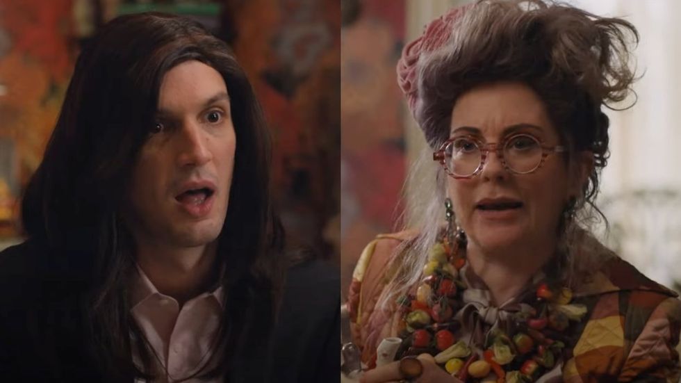 In this exclusive clip debuting on Out, fans can watch the characters of Craig (played by Sharp, who is pretending to be Jackson's character Trevor) and Evelyn (played by Mullally) having a mother-son conversation over some tea. Craig switched places with his long-lost brother Trevor to get to know his mother more, and during a cute little tea party, Evelyn says she has just seen a film from the Criterion Collection, which prompts him to call her “very cultured.”