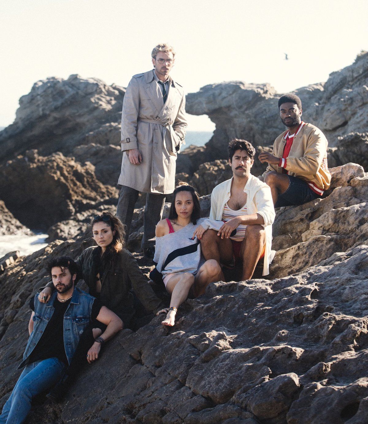(L-R) Jack Falahee, Juliana Aidén Martinez, Zane Phillips, Nancy Lam, Perry Young, and Jelani Alladin in Strangers on a Beach.