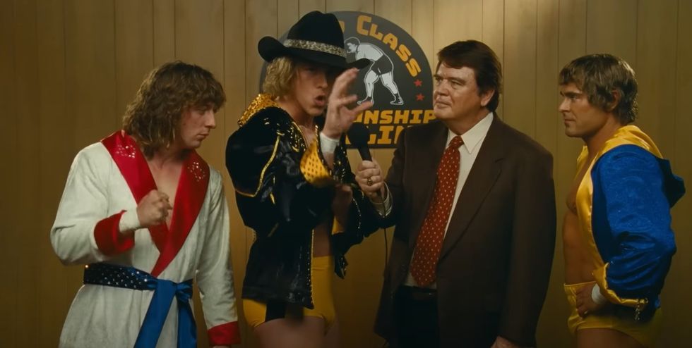 In the film, Efron and White play brothers Kevin and Kerry Von Erich, sons of famous professional wrestler Fritz Von Erich, who follow in their father’s wrestling footsteps. Unfortunately, it leads to tragedy.