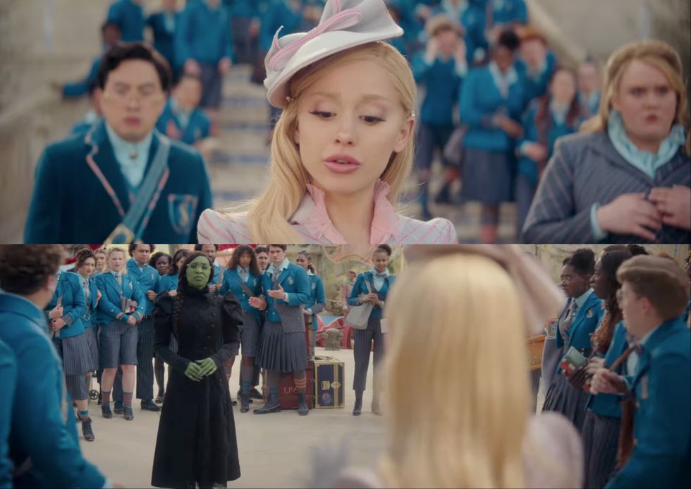 In the trailer, we're treated to Elphaba and Glinda's first ever meeting — their meet-cute, if you will.