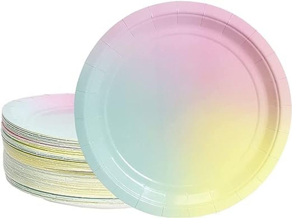 Shop Rainbow Party Supplies Pastel Paper Plates on Amazon for $16.99.