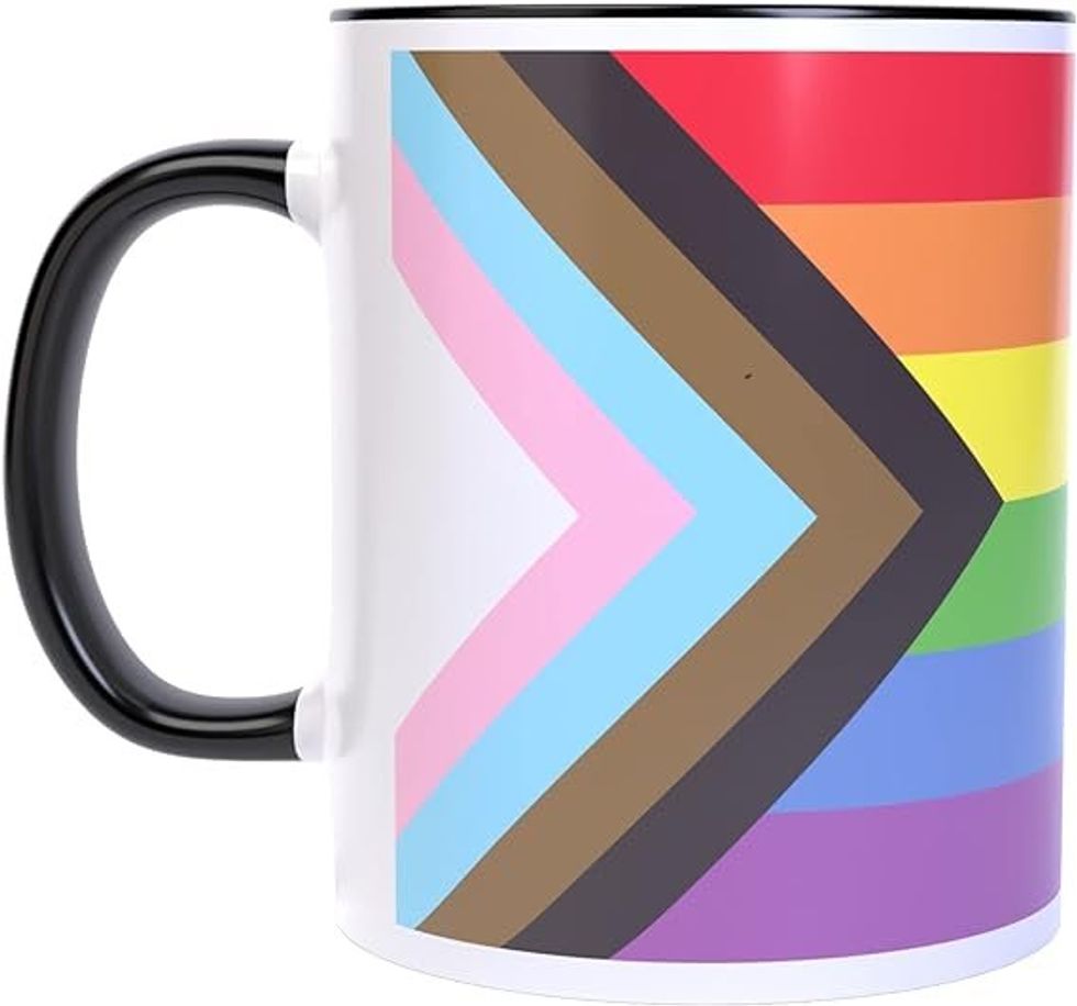 The best way to drink your coffee is with pride. Feel your queer identity represented by the Applicable Pun Progress Pride Flag Mug that features a pastel-colored design of the Progress Pride Flag to show off who you are and the pride you have in yourself.