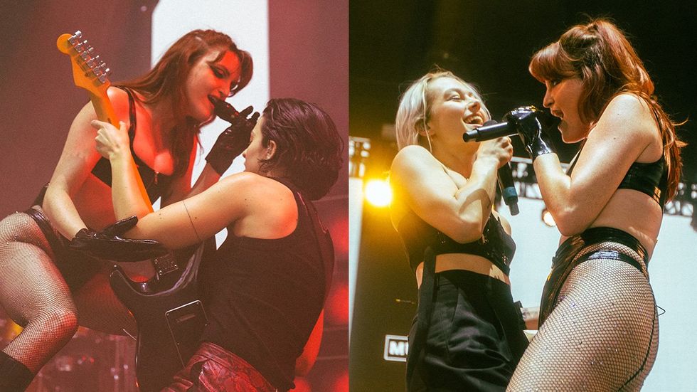 Katie: This tour and playing Coachella, we've had these just like, really, really fun special experiences where we also recognize that we are kind of moving in a bit of a bubble where it's safe for us to be grinding on stage. And it was cool to have that moment. I finally got Phoebe to dance with me. It was very cute. I was very moved by it honestly. We've been coaxing Phoebe to do dance moves since we started performing. It was cute to have that little moment like going around on Lesbian Visibility Day. But I also recognize that this is just such a fucking crazy time to be in the spotlight as a visibly queer band. So we were also thinking about the people that weren't at Coachella but were watching on the live stream and are in different environments dealing with different things. We're just happy that we have the opportunity to be publicly out and safe. We also have the obligation to do that.