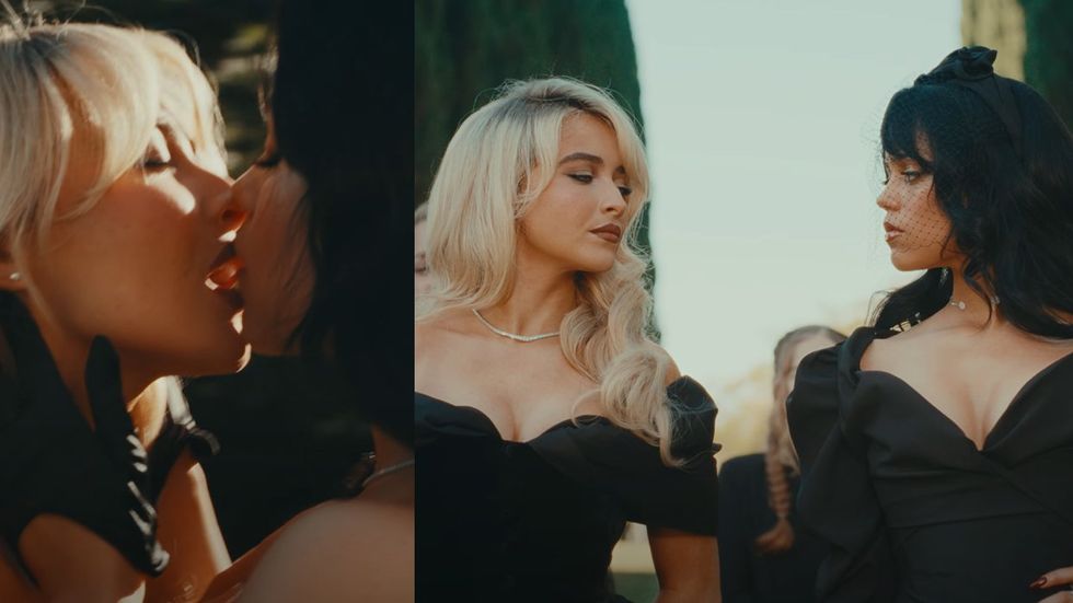 In the video (which features references to the classic camp film Death Becomes Her and a very messy, murderous love triangle), Carpenter and Ortega are fighting over a man, but when they lock lips with each other, it's like the internet collectively gasped and then immediately went into overdrive. The LGBTQ+ community in particular is going wild, celebrating the kiss as a new Sapphic moment in pop culture history! (Truthfully, it's almost giving Britney and Xtina circa 2003 vibes, and we're here for it!)