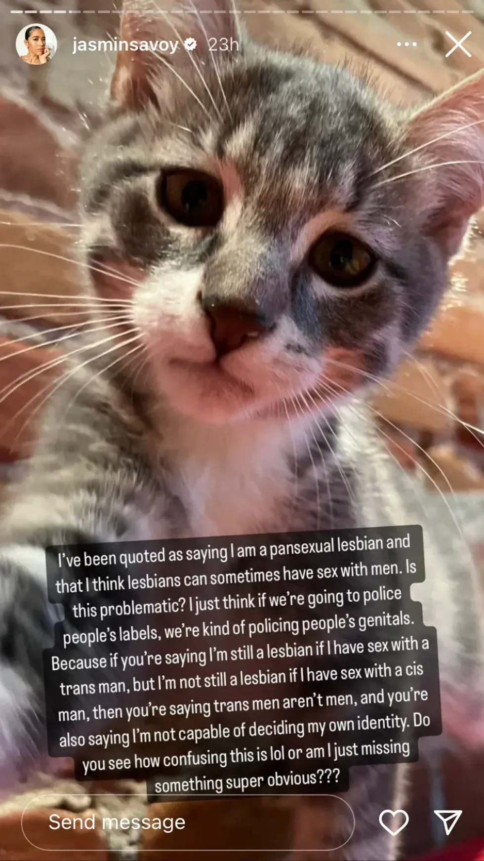 Yellowjackets and Scream star Jasmin Savoy Brown is lighting up Instagram with discourse on what it means to be a lesbian — and we are standing firmly behind her. Brown took to her Instagram stories yesterday to ask some questions about her identity.