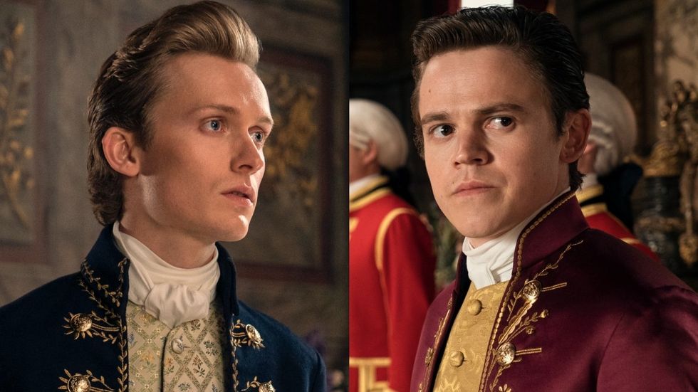 Though we had gotten some blink-and-you-miss-it representation of gay men on the flagship Bridgerton series, the Queen Charlotte prequel series features two more fully-realized characters: Brimsley, the Queen’s secretary (played by Sam Clemmett), and Reynolds, the King’s secretary (played by Freddie Dennis).