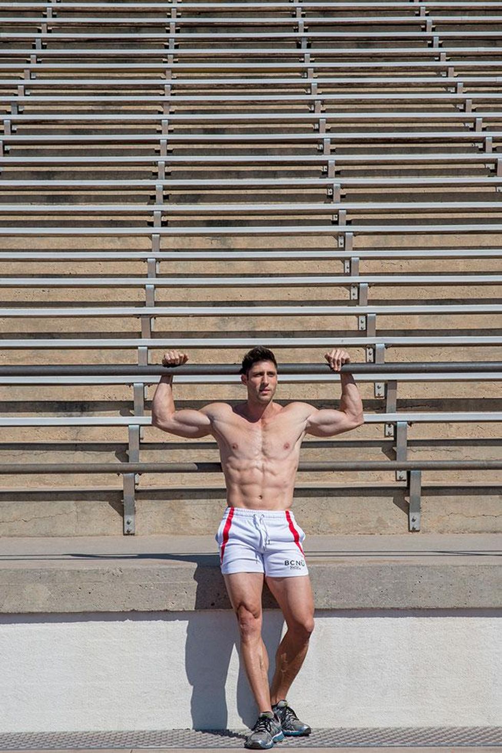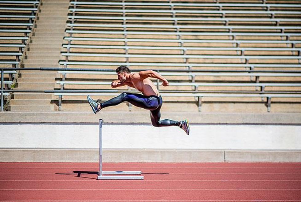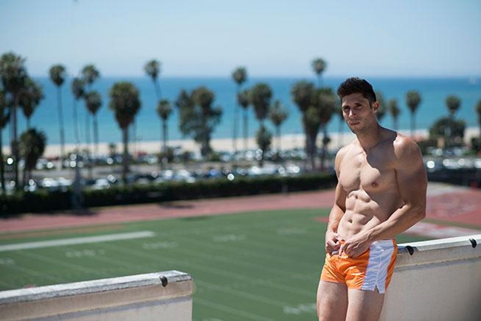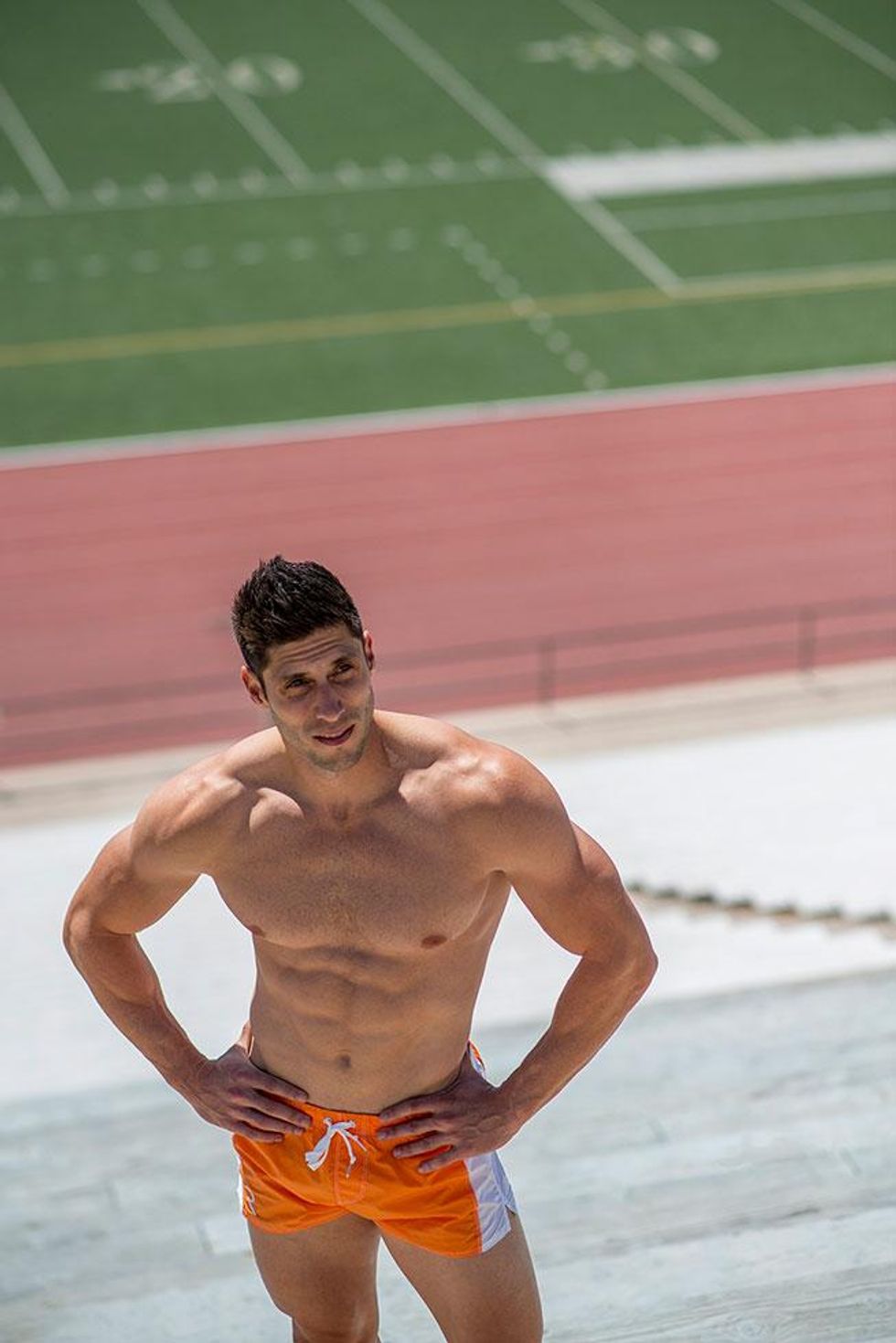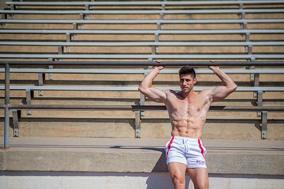 A little over a decade ago, Jaret Campisi was one of the world's top hurdlers and narrowly missed a chance to be on the USA Olympic track team. Now he makes a living working in mapping for an environmental consulting firm in Santa Barbara, Calif. Plus, he's a part-time coach at Santa Barbara City College, coaching hurdles and horizontal jumps, along with being a personal trainer and competing in body-building events. In an interview and photo shoot for the UK-based Winq magazine, he shared his fitness secrets, and Out has exclusive access to the sexy material to share stateside.