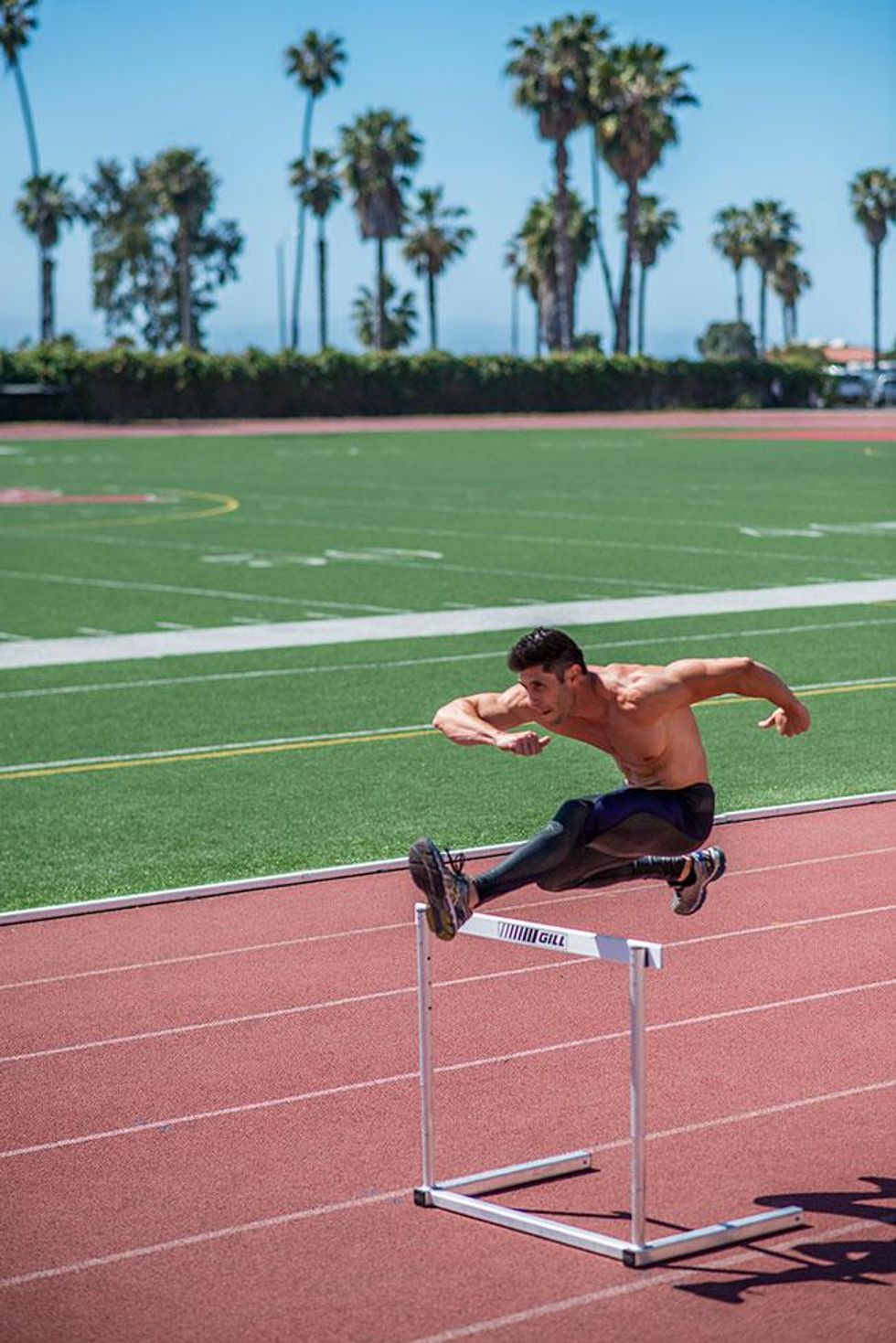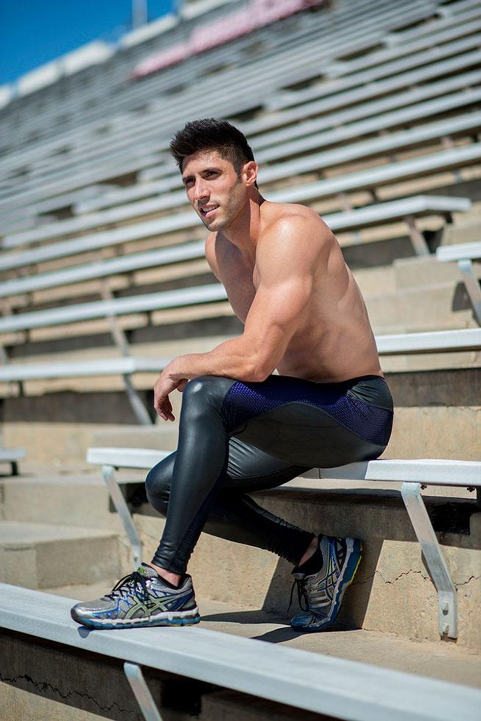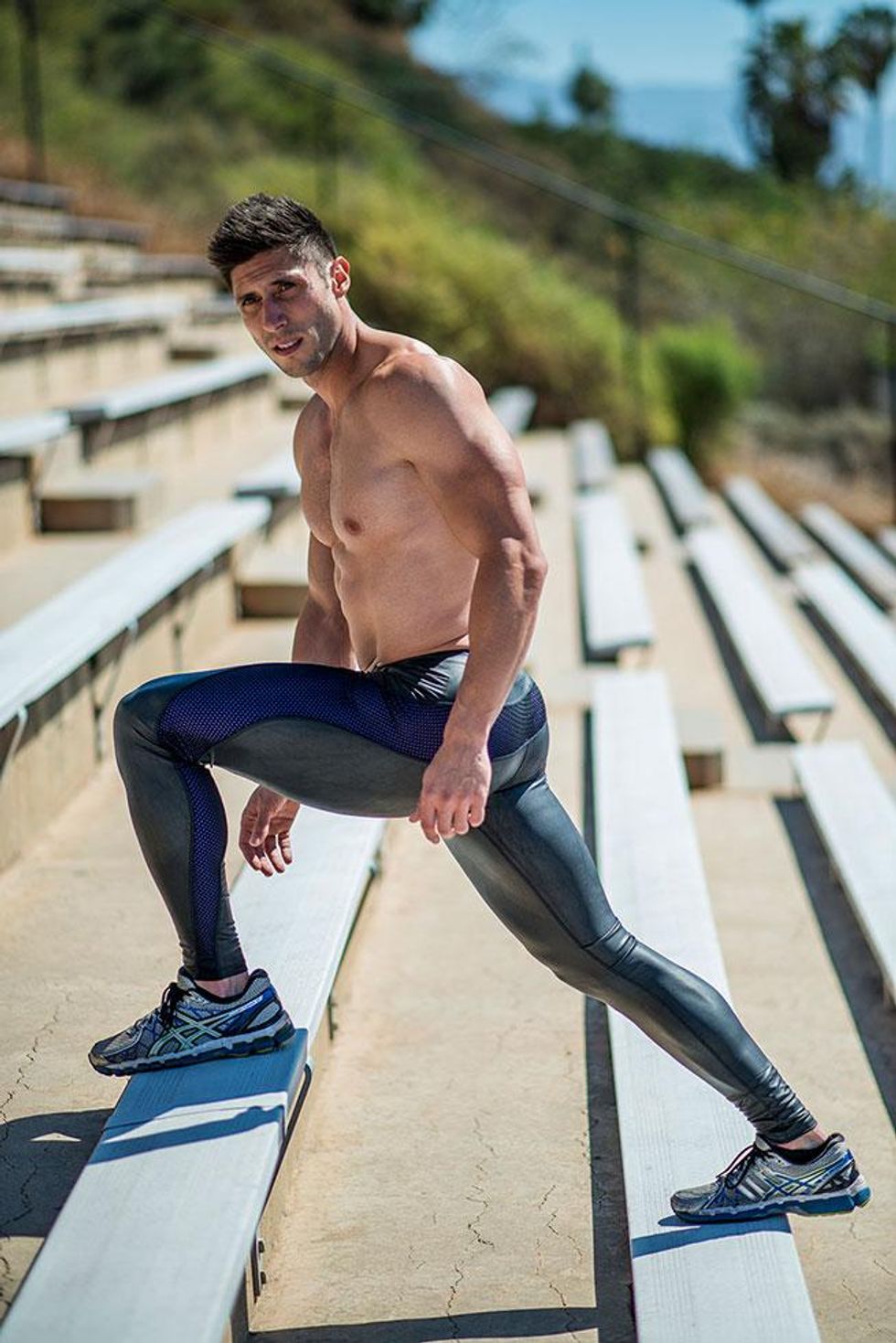 A little over a decade ago, Jaret Campisi was one of the world's top hurdlers and narrowly missed a chance to be on the USA Olympic track team. Now he makes a living working in mapping for an environmental consulting firm in Santa Barbara, Calif. Plus, he's a part-time coach at Santa Barbara City College, coaching hurdles and horizontal jumps, along with being a personal trainer and competing in body-building events. In an interview and photo shoot for the UK-based Winq magazine, he shared his fitness secrets, and Out has exclusive access to the sexy material to share stateside.