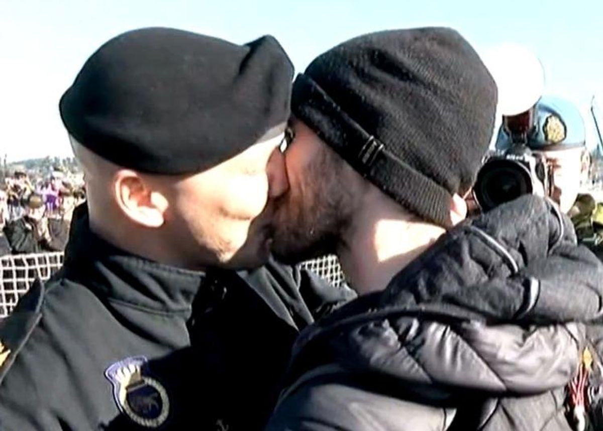 This time, it was Master Seaman Francis Legare. Upon his return, he embraced his partner, Corey Vautour with an emotional kiss. After eight months at sea, it's beautiful to see these two men reunited.