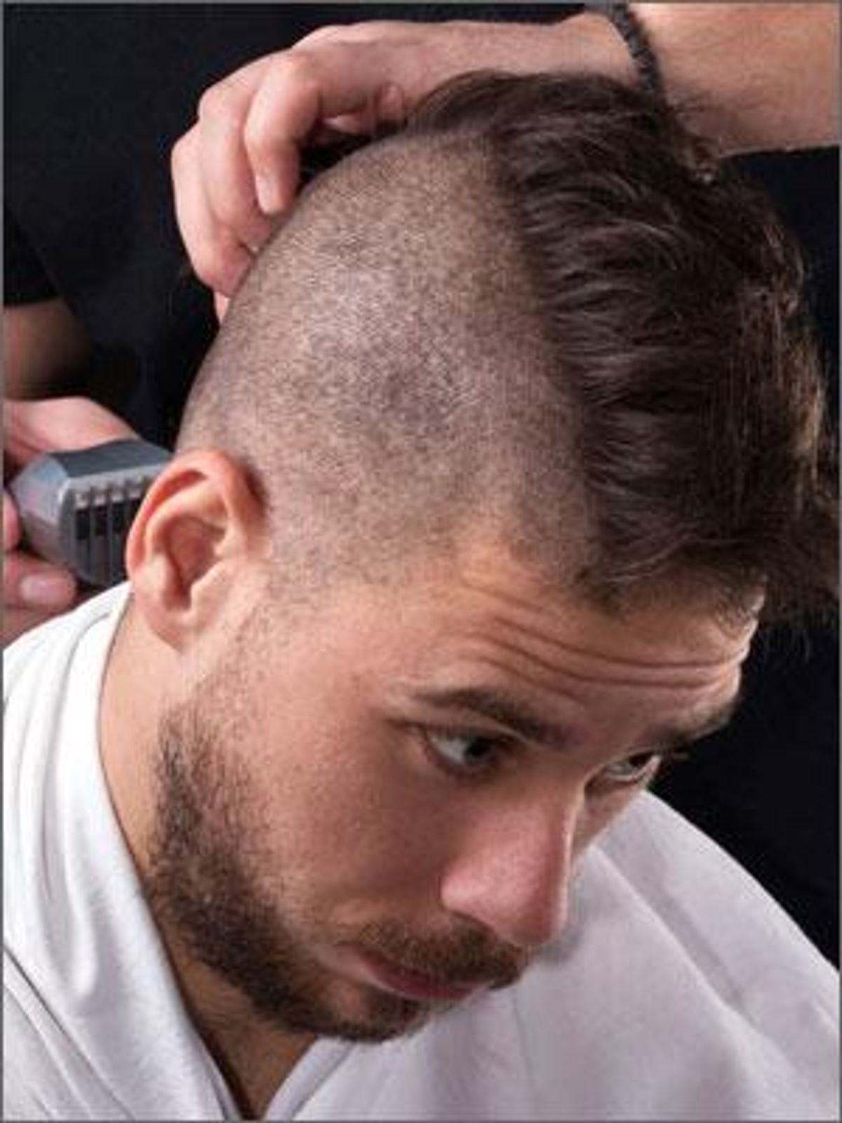 What we're after here is a look that slenderizes. Waves and curls at eye level can help minimize a full face, as can slightly off-center hair parts. Beards can be styled to make the face appear more oval. And if you happen to have an oval face, long hair will work particularly well on you. Another way to narrow a round face is with square shapes, like a flattop.
