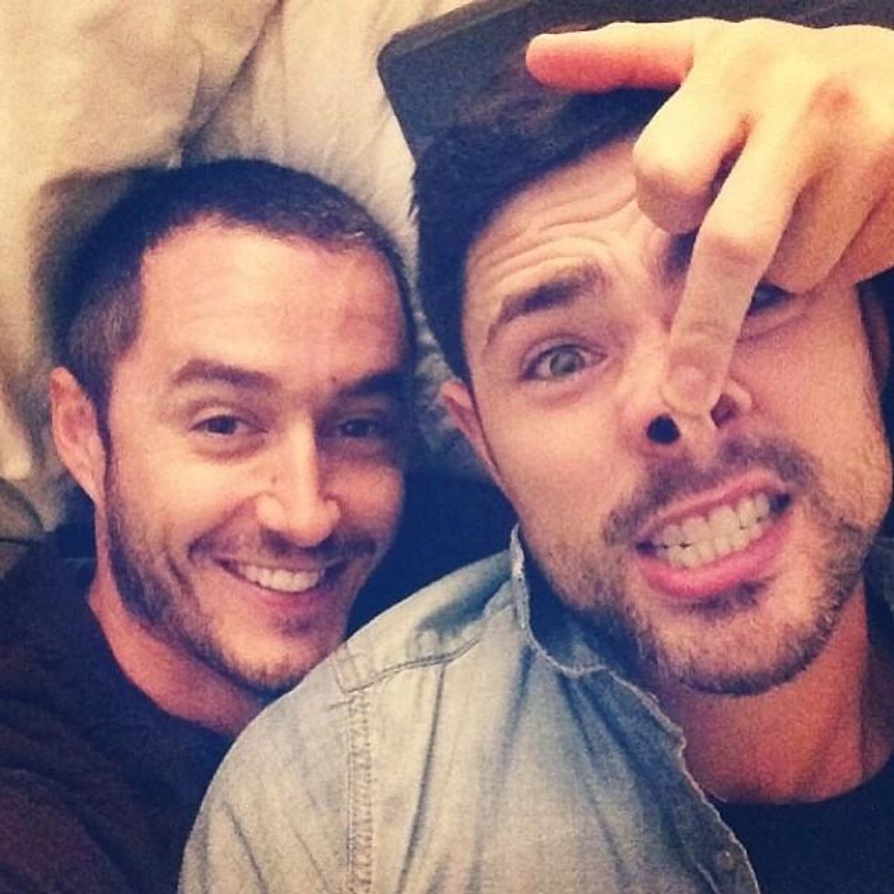 The actor Matt Dallas and singer-songwriter Blue Hamilton announced their engagement on Twitter back in 2013 and tied the knot over Fourth of July weekend 2015. Congrats!