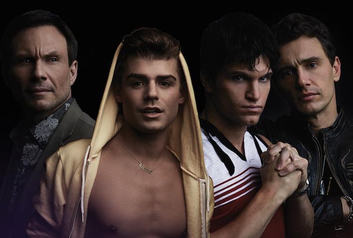 In the film--which I saw at the Tribeca Film Festival last week--Disney Channel refugee Garrett Clayton projects the perfect mix of innocence and naughtiness as Idaho-born Sean Paul Lockhart, who picks the name Brent Corrigan out of a phone book and becomes a popular porn star in the aughts, thanks to videos made by Cobra's Bryan Kocis--here called Stephen (Christian Slater)--a poignant "dirty old man" who not only aims to make money off Brett, he wants the kid to help him stave off loneliness by pleasing him in the sack whenever the mood strikes. In a parallel story, James Franco is an aging escort-turned porn producer named Joe, whose stable of Viper Boyz includes his own younger lover, Harlow (Keegan Allen), an eager to please hustler who's been abused by his stepdad and turns to Joe for a more loving fatherly figure. ("Who's daddy's little piggy pig?" coos Franco in one of their playful moments--though the relationship is every bit as toxic as you'd expect, fueled by jealousy, possession, and misguided affection. There's also some free spirited play acting, like the scene I mentioned, where Franco's character--normally a top--is bent over the couch for some bottom action and begging for "dick." If it were anyone but Franco, it would be a shock, lol.)