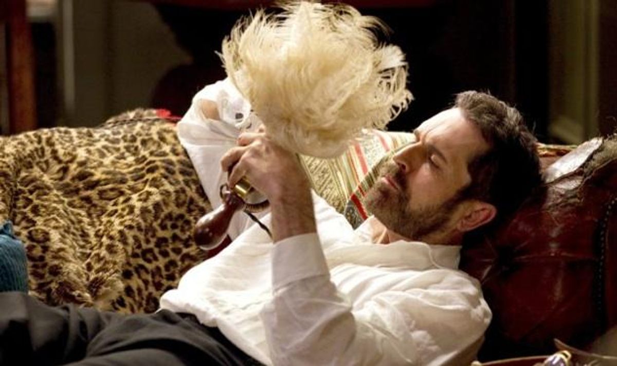 Pictured: Ruper Everett with a "magic featherduster" in 'Hysteria'?