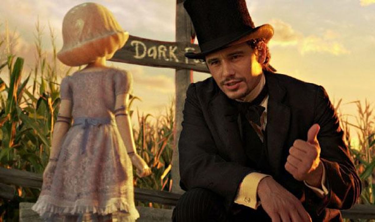 While Deschanel and scarecrow Alan Cumming do their best, the attempts to make the story steampunk-chic are a bit much. Oz being called the O.Z. ("Outer Zone")? That's just douchey.