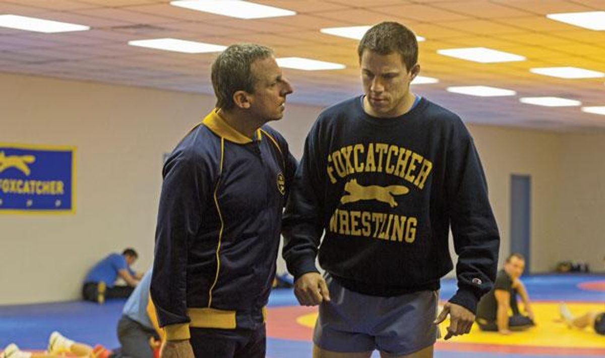 As a naive, Olympics-bound wrestler in the new film Foxcatcher, Channing Tatum is vulnerable to a fault -- not to mention game for anything. Based on real-life world champion wrestler Mark Schultz, Tatum's character, an enigma steeped in daddy issues, finds solace in millionaire coach John du Pont (Steve Carell), who, in unofficially adopting Mark and presumably making him the target of hush-hush desires, becomes the Liberace to the athlete's Scott Thorson.