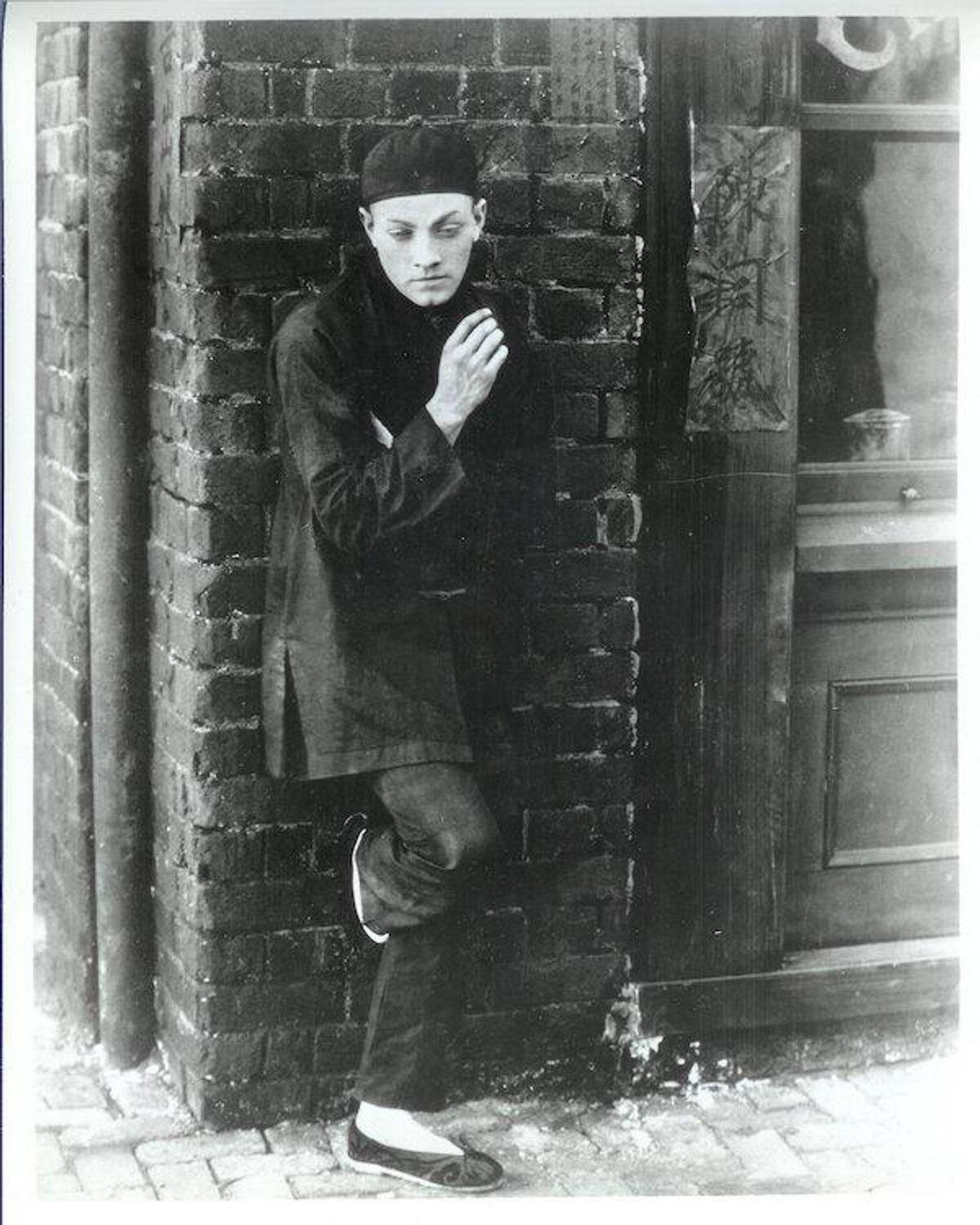 Barthelmess's Huan is both a pacifist response to World War I and the first on-screen instance of the Sad Young Man, that solitary figure whose misunderstood gentility and loneliness hid his elegant taste and discreet eroticism. Barthelmess exquisitely mimes Huan's delicate personality. The iconic image of him huddled on a London street corner with his languid, slanted eyes, and his long and shapely fingernails and left knee crooked to steady himself (almost a concubine's stance), is the farthest thing from a racist caricature. Who can doubt that Griffith knew exactly what he was doing while pushing male portrayal this far toward femininity?