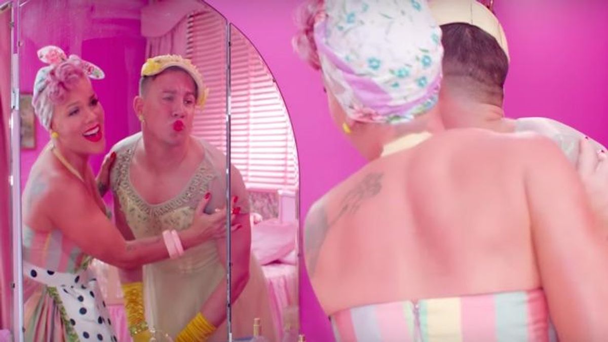 Who knew watching P!nk and Channing Tatum explore drag, BDSM, and synchronized dance as a 50s-era couple would be so damn charming? Far removed from the side of a building she used to debut her new track "Beautiful Trauma," our favorite punk acrobat took a decidedly more pastel and primped route for the music video.