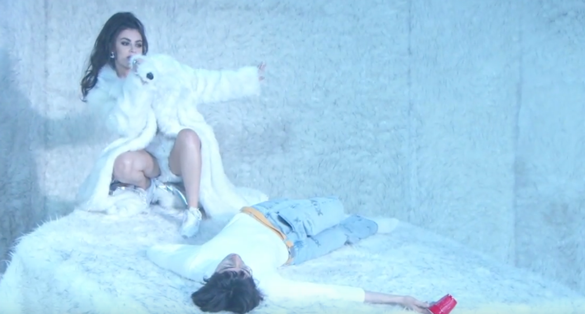 Charli XCX has proven once again she's the ultimate DGAF pop-rebel princess. Last night the "Crazy Crazy" songstress performed her latest single, "After the Afterparty," on Jimmy Kimmel, completely encased in a white fur room, where a passed out A.G. Cook (of PC Music) was the only on-stage guest. "Got glitter in my underwear like it was Studio 54," she sings, flipping the tails of her matching white fur robe and swinging her '90s porn star ponytail.