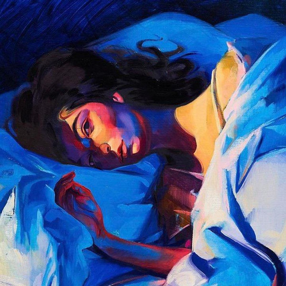The artwork for her new project is a dramatic painting by queer artist Sam Mckinniss, who depicted the singer in bed, staring directly at the viewer. "'Green Light' is officially out in the world and I am so pleased to share with you that this song is the first from my sophomore record, Melodrama," Lorde posted to Instagram, sharing the album art. "This is the cover, painted by Sam McKinniss."