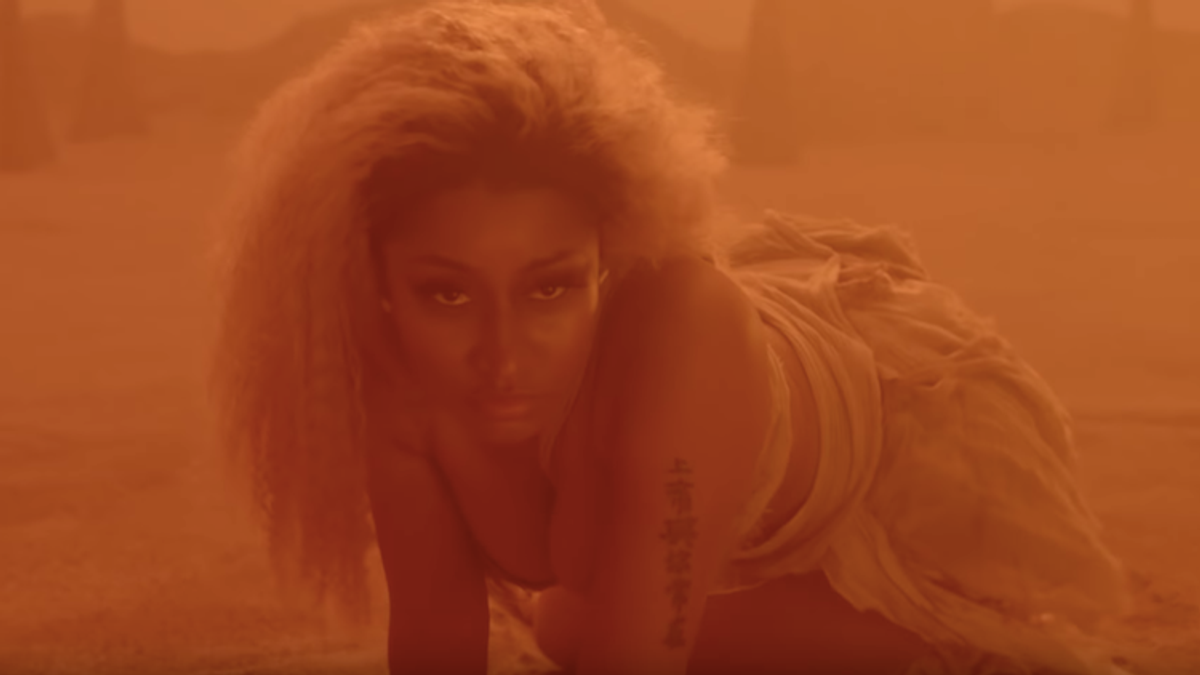 In the new video off of her latest album Queen, Nicki Minaj plays a royal empress crawling through the sands of a fiery desert, surrounded by warriors/ highly muscular dancers.