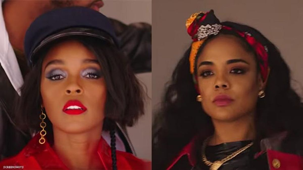 But "Screwed" was too powerful and, after all, we are now living in 20BiTeen, and Monae is one of our greatest bicons (Monae came out as pansexual last year, but "Make Me Feel" was the most bisexual music video we've ever seen). On Monday, Monae released a music video for "Screwed" that continues the narrative of her previous Dirty Computer videos, co-starring Monae's rumored real life girlfriend, Men in Black star Tessa Thompson (who has said that she and Monae "love each other deeply"). While Kravitz doesn't appear in the video (maybe she's too busy preparing for Big Little Lies season two), it's still a visual feast, full of strikingly colorful looks, a political agenda, drones, secret government agents, and more.