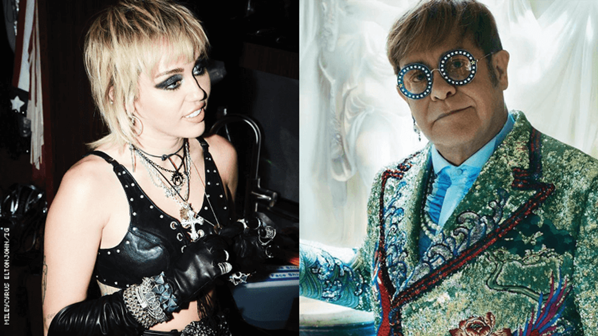 In an interview with Capital FM, Cyrus revealed that she's working on an upcoming cover of Metallica's hit "Nothing Else Matters," and she's bringing pop icon Elton John along with her.