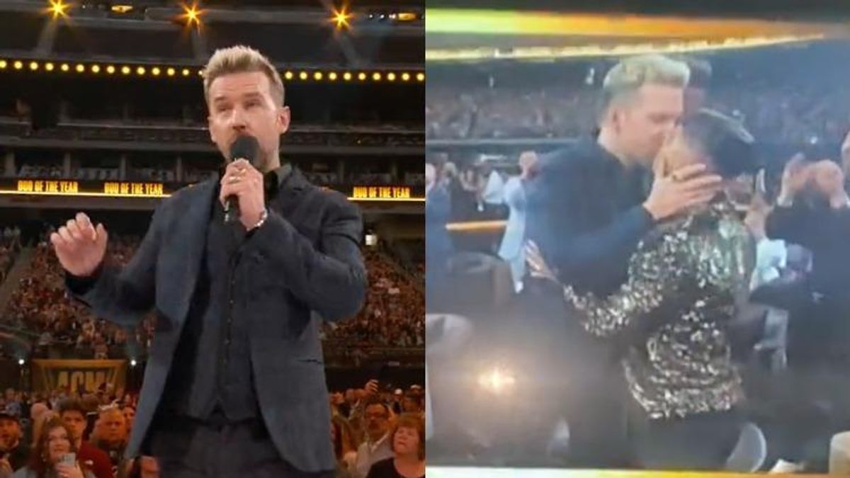 Upon having their name announced, TJ Osborne reportedly kissed his boyfriend Abi Ventura before going up on stage. According to social media, the kiss was captured on screen. When the newly-blond Osborne got to the stage, he gave Ventura a shout out.