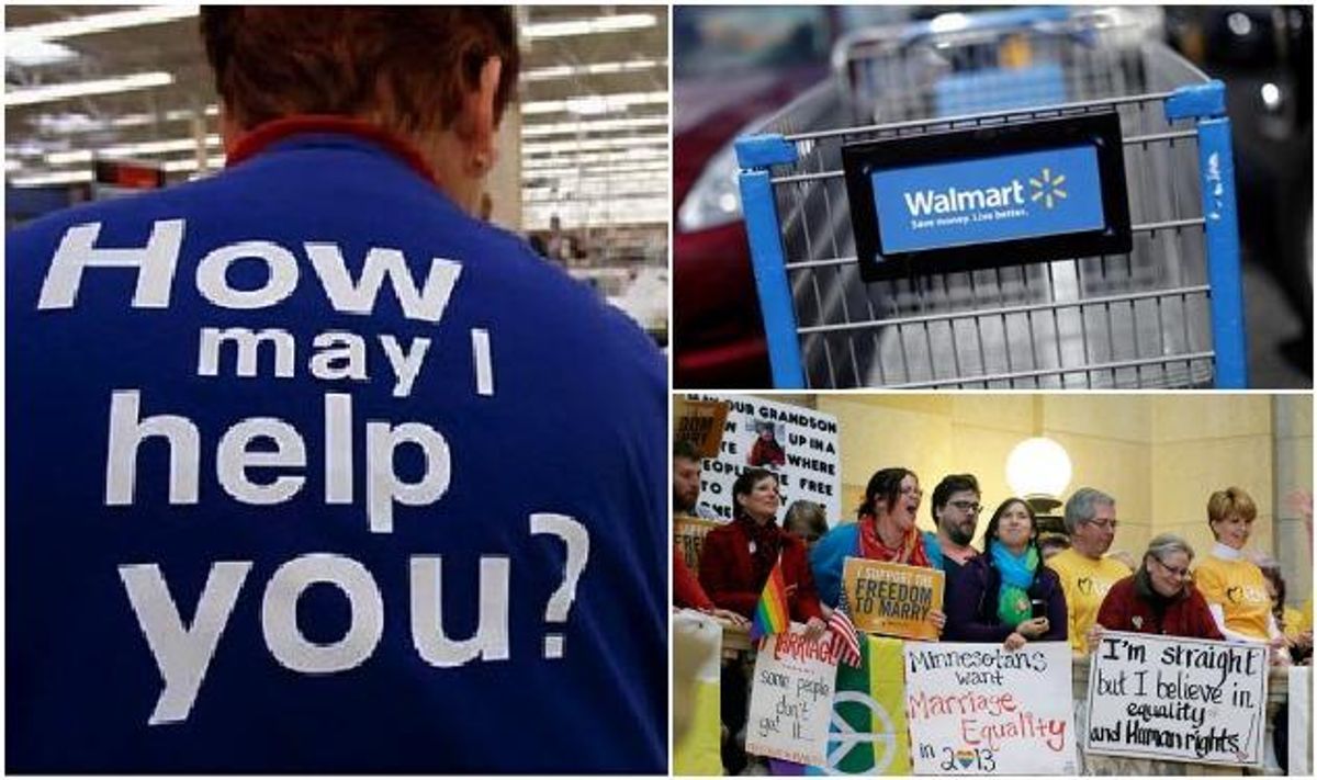 In spite of the seemingly countless companies that have joined the movement for equality, America's largest private employer is headed in the opposite direction. Walmart has had many transgressions in the past that threatened its reputation, including leaving strip malls bare when opening newer, bigger stores; cutting employee health insurance coverage; and attempting to scare employees into voting against Democrats.