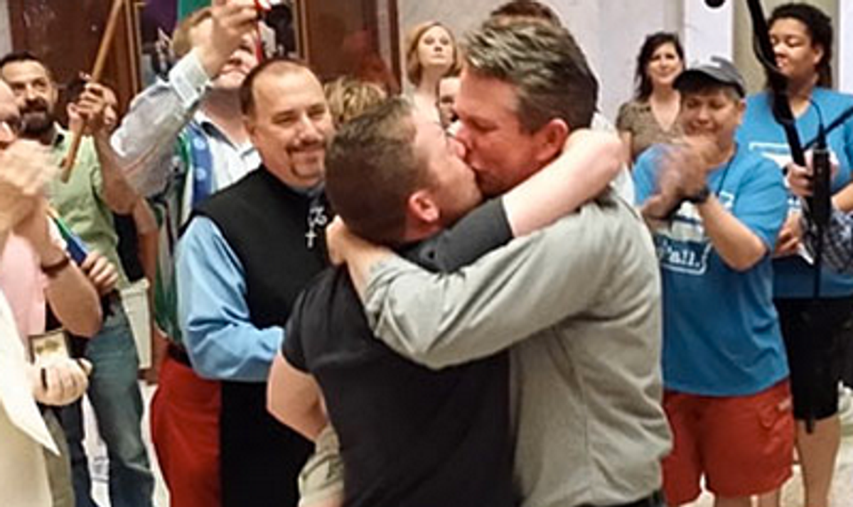 Same-sex couples lined up outside county clerks' offices in Arkansas's Pulaski and Washington counties today, hoping to take advantage of the brief marriage equality window before a judge's Friday ruling is likely put on hold.